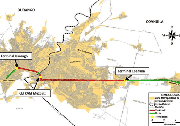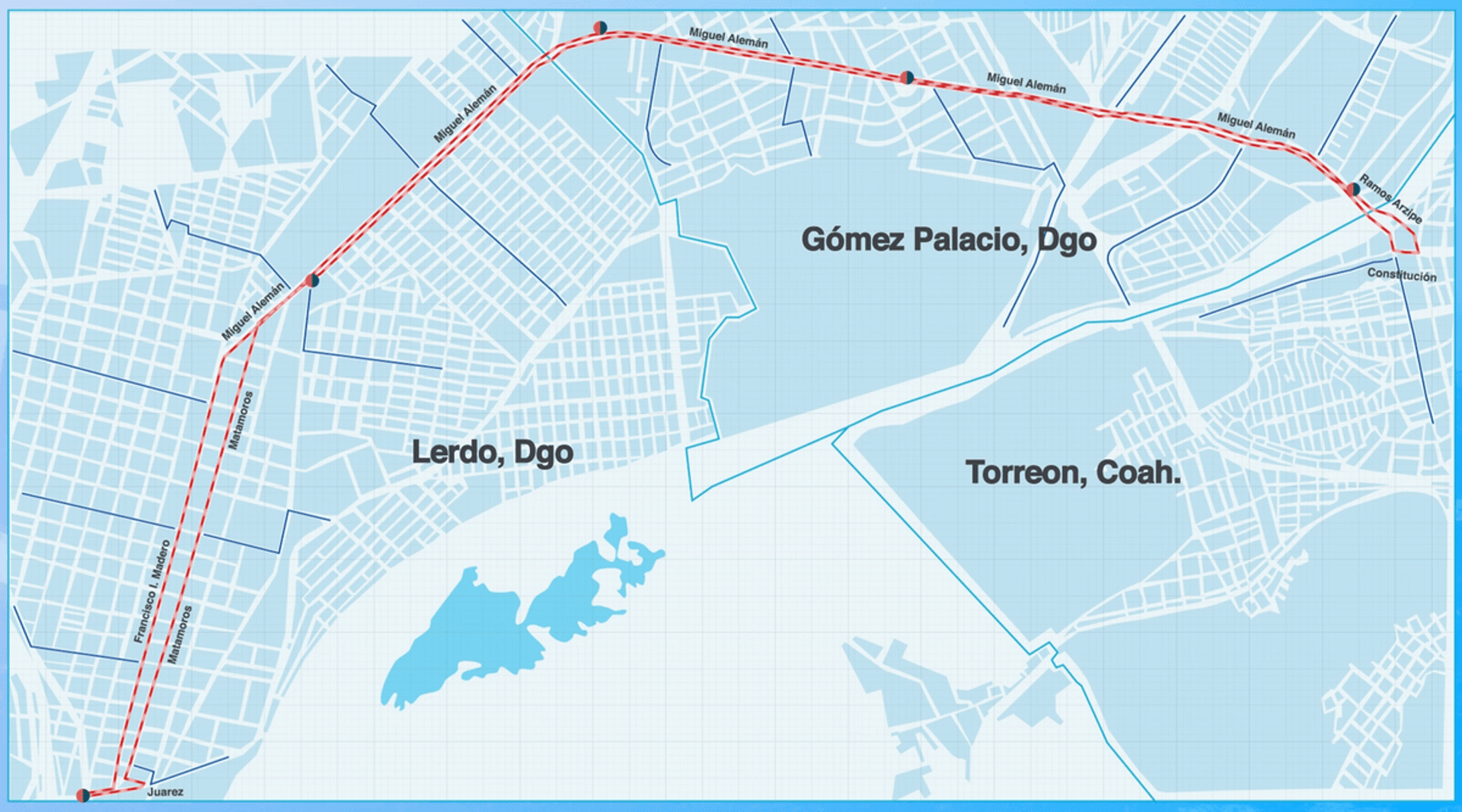 El objetivo del “Proyecto BRT Corredor Troncal de La Laguna” es incrementar el bienestar de los usuarios de transporte público de la Zona Metropolitana de La Laguna (ZML), a través de la implementación de un sistema de transporte masivo tipo BRT1. Estos beneficios se logran al reducir el tiempo promedio de viaje de las personas que utilizan el corredor propuesto o alguna de las rutas reestructuradas. Además, el incremento de velocidad tiene efectos positivos en los costos de operación vehicular (COV) y disminuye en los tiempos de traslado. De la reducción de kilómetros recorridos por las unidades de transporte, se generarán menores emisiones de CO2. La seguridad vial es otro elemento clave en el desempeño de un sistema de transporte, generalmente los sistemas organizados cuentan con buenos estándares de mantenimiento mecánico de los autobuses, capacitación de conductores y una infraestructura dedicada que permite mejorar la seguridad, en los principales corredores de los Sistemas BRT implantados. En Latinoamérica, en los últimos años se han logrado disminuir los niveles de las tasas de accidentalidad y fatalidad. En algunos corredores, ésta reducción ha sido significativa; hasta del 80% en la Avenida Caracas en el BRT TransMilenio en Bogotá y 40% en los corredores del BRT Metrobús en la Ciudad de México. Finalmente, la implementación de estos sistemas a nivel nacional e internacional ha demostrado que incrementa la fiabilidad en los traslados, mejorando el confort de viaje, garantizando una frecuencia mínima de paso de los autobuses y con ello, los usuarios pueden planear con mayor certidumbre sus actividades diarias.